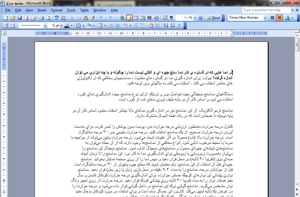 در دما هايي كه در گستره ي كار دما سنج جيوه اي و الكلي نيست دما را چگونه و با چه ابزاري مي توان اندازه گرفت؟ جواب: برای اندازه گيري دما در گستره هاي متفاوت ، دماسنجهای مختلفي که از تکنولوژي هاي خاص استفاده مي کنند ، استفاده مي کنند.به مثالهاي زير توجه کنيد: