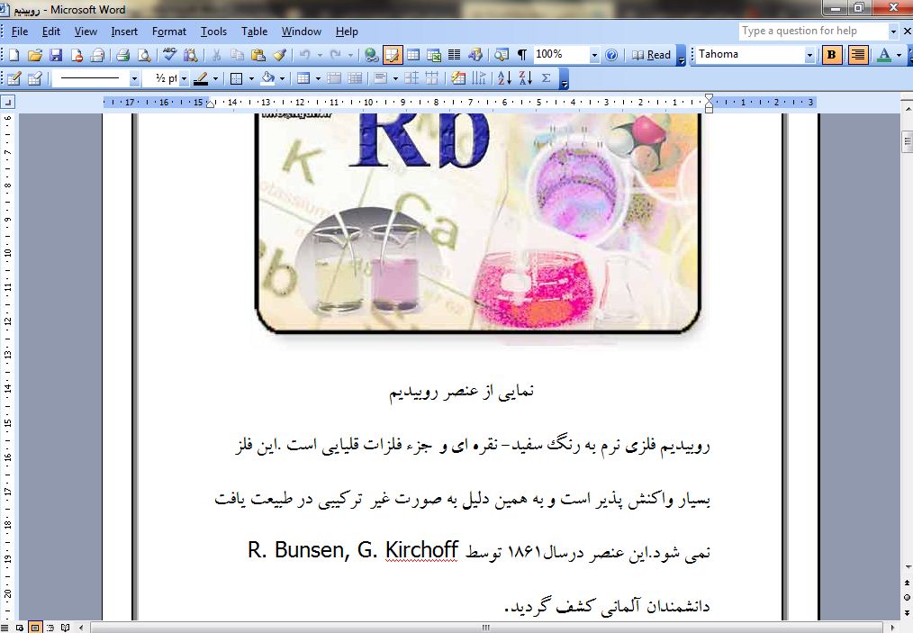 روبیدیم فلزی نرم به رنگ سفید- نقره ای و جزء فلزات قلیایی است .این فلز بسیار واکنش پذیر است و به همین دلیل به صورت غیر ترکیبی در طبیعت یافت نمی شود.این عنصر درسال۱۸۶۱ توسط R. Bunsen, G. Kirchoff الکترولیز یا کاهش شیمیایی کلرید مذاب آن بدست می آید. روبیدیم- ۸۷ ایزوتوپ رادیو اکتیو این فلزاست.۱۵ ایزوتوپ دیگر برای این عنصر شناخته شده است.