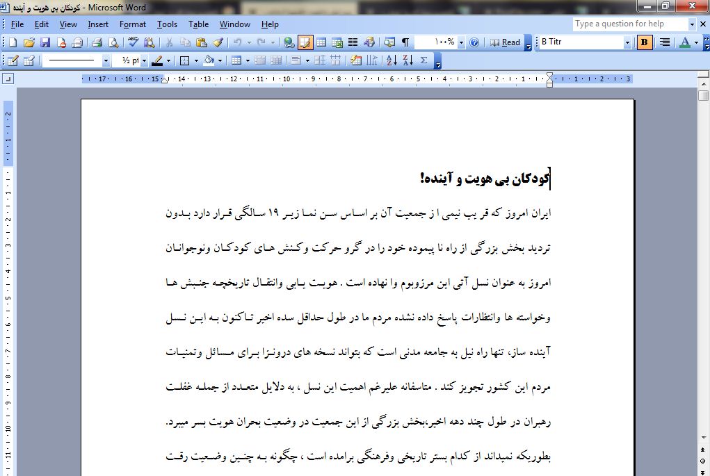 ايران امروز که قر يب نيمی ا ز جمعيت آن بر اساس سن نما زير ۱۹ سالگی قرار دارد بدون ترديد بخش بزرگی از راه نا پيموده خود را در گرو حرکت وکنش های کودکان ونوجوانان امروز به عنوان نسل آتی اين مرزوبوم وا نهاده است . هويت يابی وانتقال تاريخچه جنبش ها