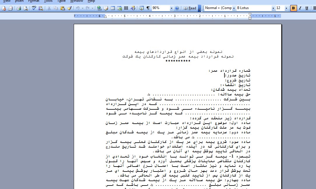 دانلود فرم قرارداد بيمه عمر زماني كاركنان يك شركت