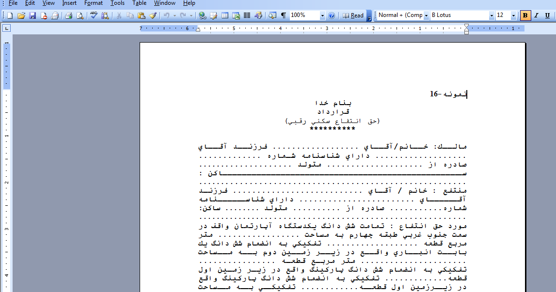 دانلود فرم قرارداد حق انتفاع سكني رقبي