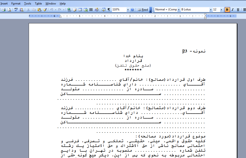 دانلود فرم قرارداد صلح حقوق تلفن