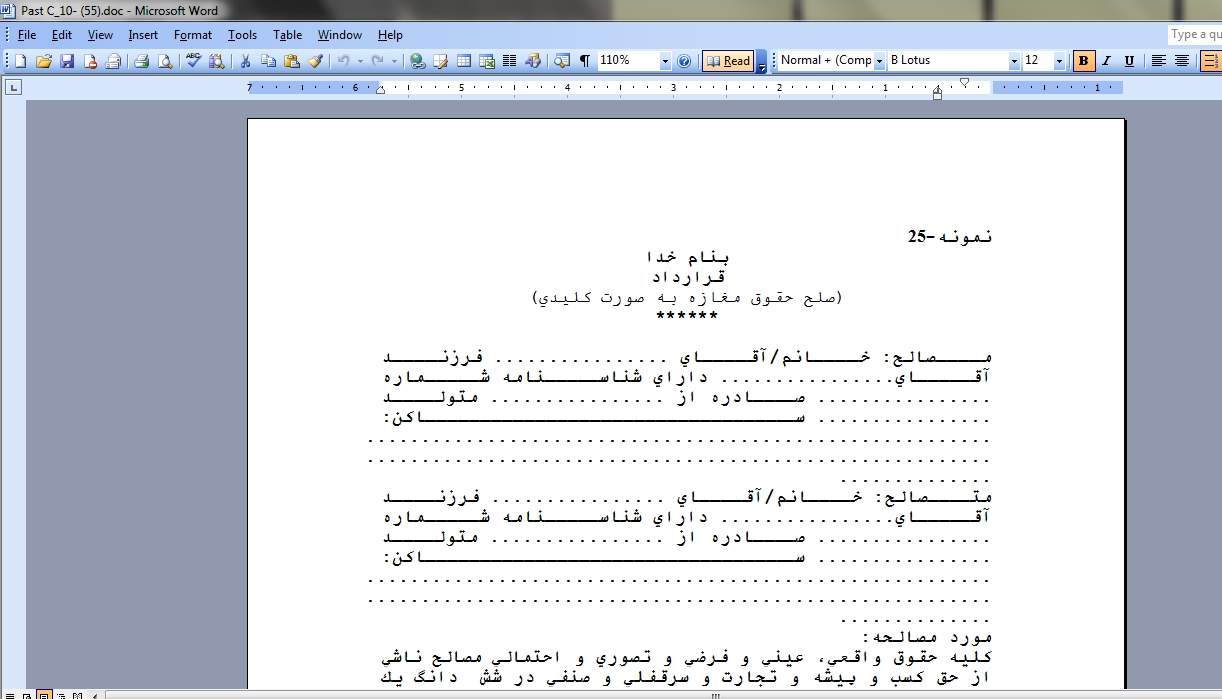 دانلود فرم قرارداد صلح حقوق مغازه به صورت كليدي