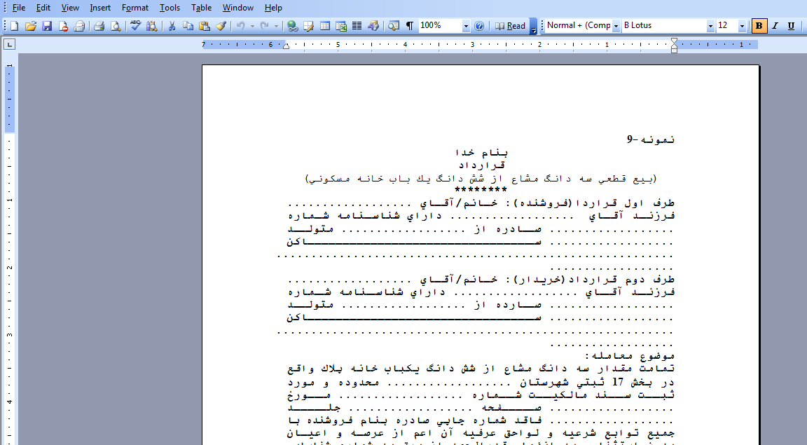 دانلود قرارداد سه دانگ مشاع از شش دانگ يك باب خانه مسكوني